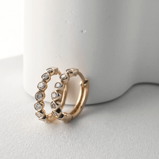 "Audrey" Bezel-set Diamonds Hoops Earrings- Pair