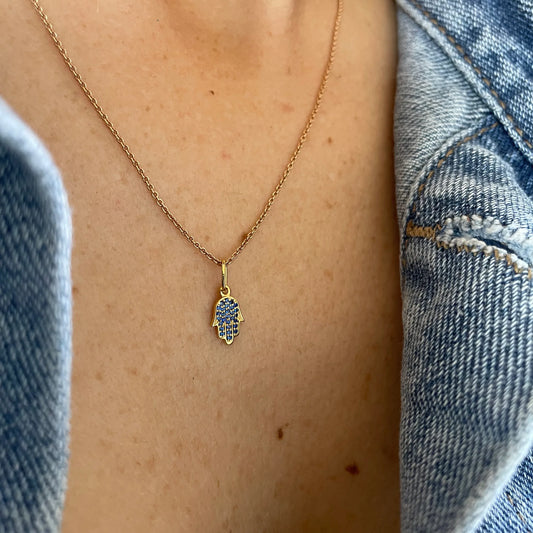 Mini Sapphire Hamsa Pendant/ Charm