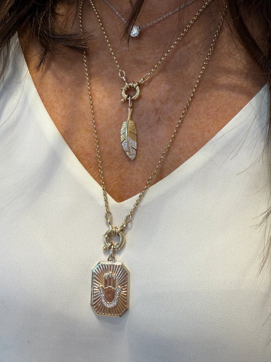 Aly Hamsa Fluted Diamond Pendant Dogtag