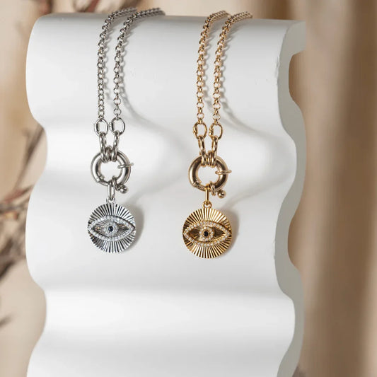 Evil Eye Fluted Medallion Pendant