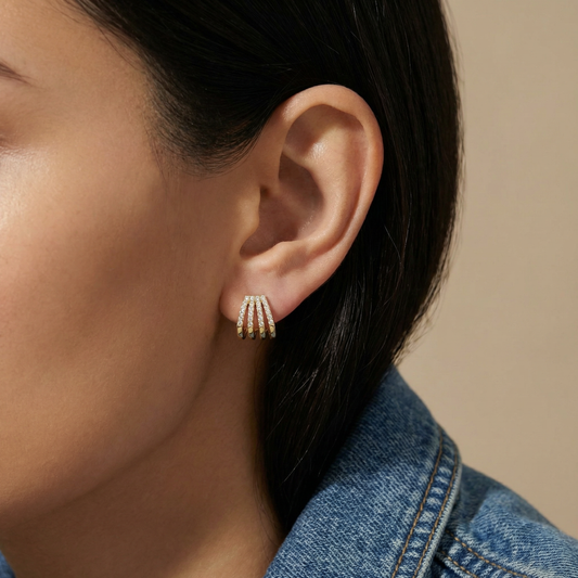 Four-Row Pavé Diamond EarCuffs Huggies Earrings