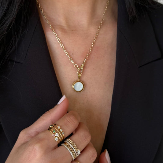 Justine Mother of Pearl & Onyx pendant (Reversible/ Double sided)