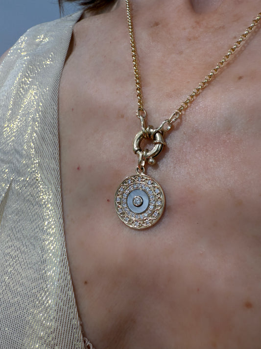 Sonia Diamonds and Mother of Pearl Disc Pendant