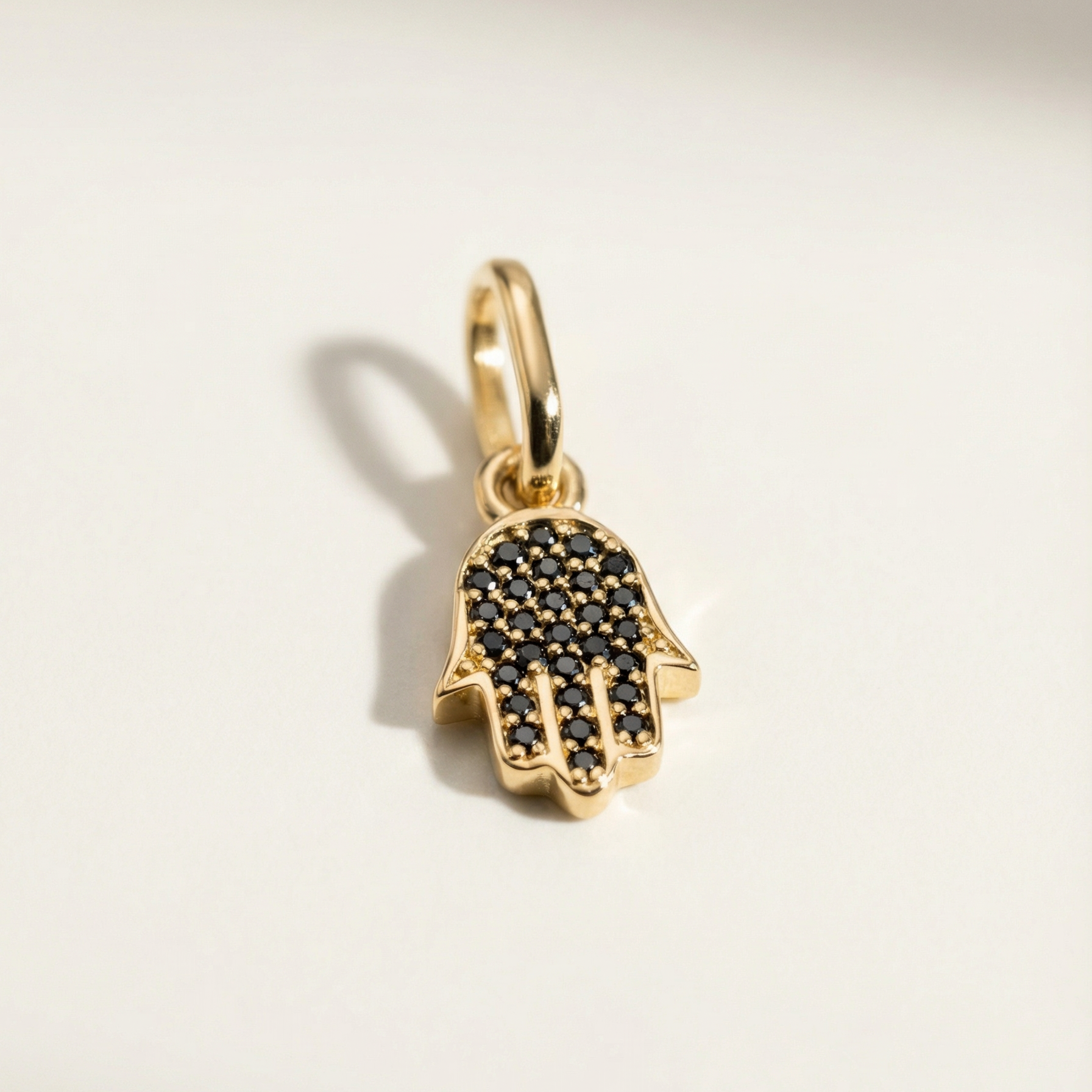 This delicate Hamsa can be worn as a pendant or necklace. It can also be added to a bracelet as a charm.