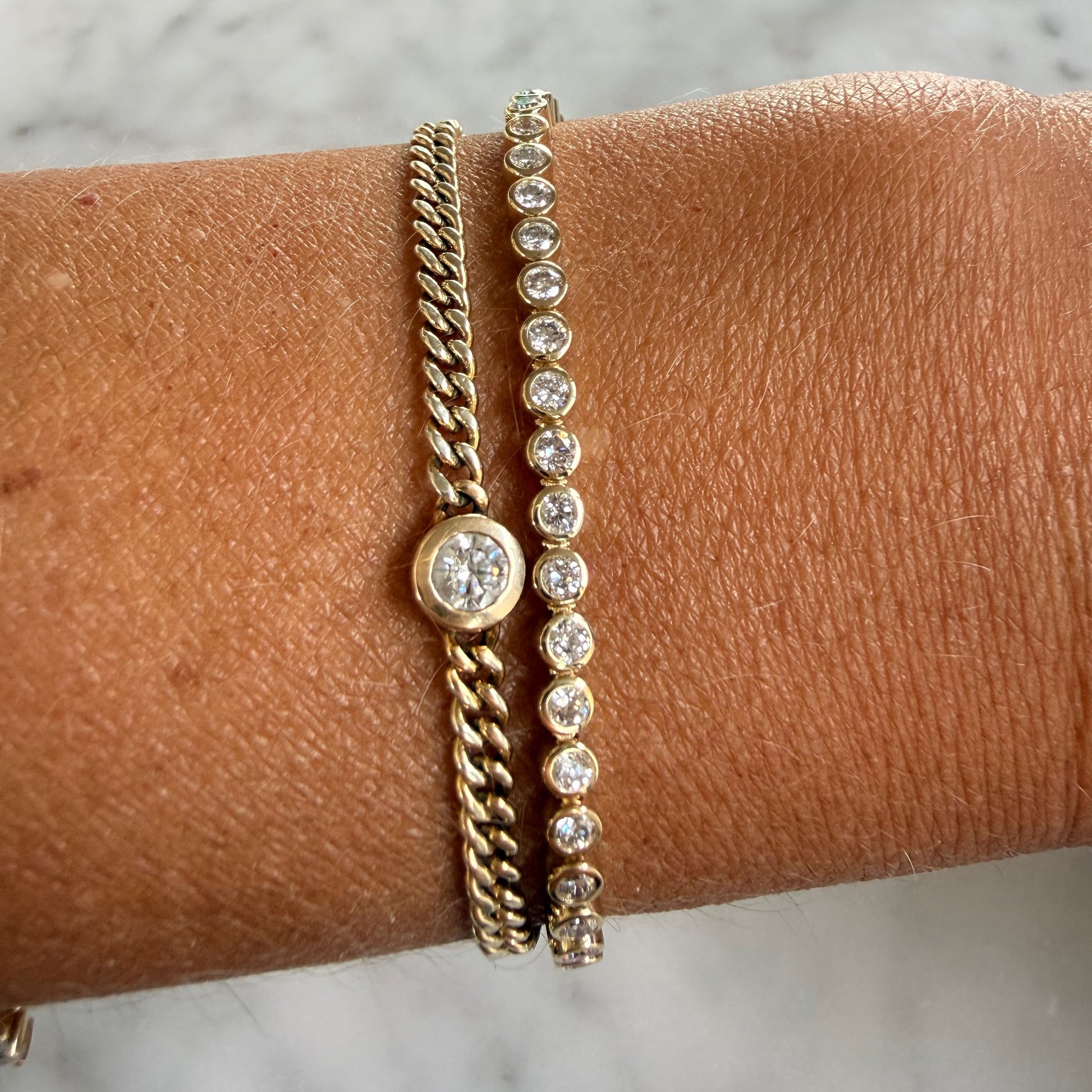 2 Carat Bezel Set Solid Gold Tennis Bracelet