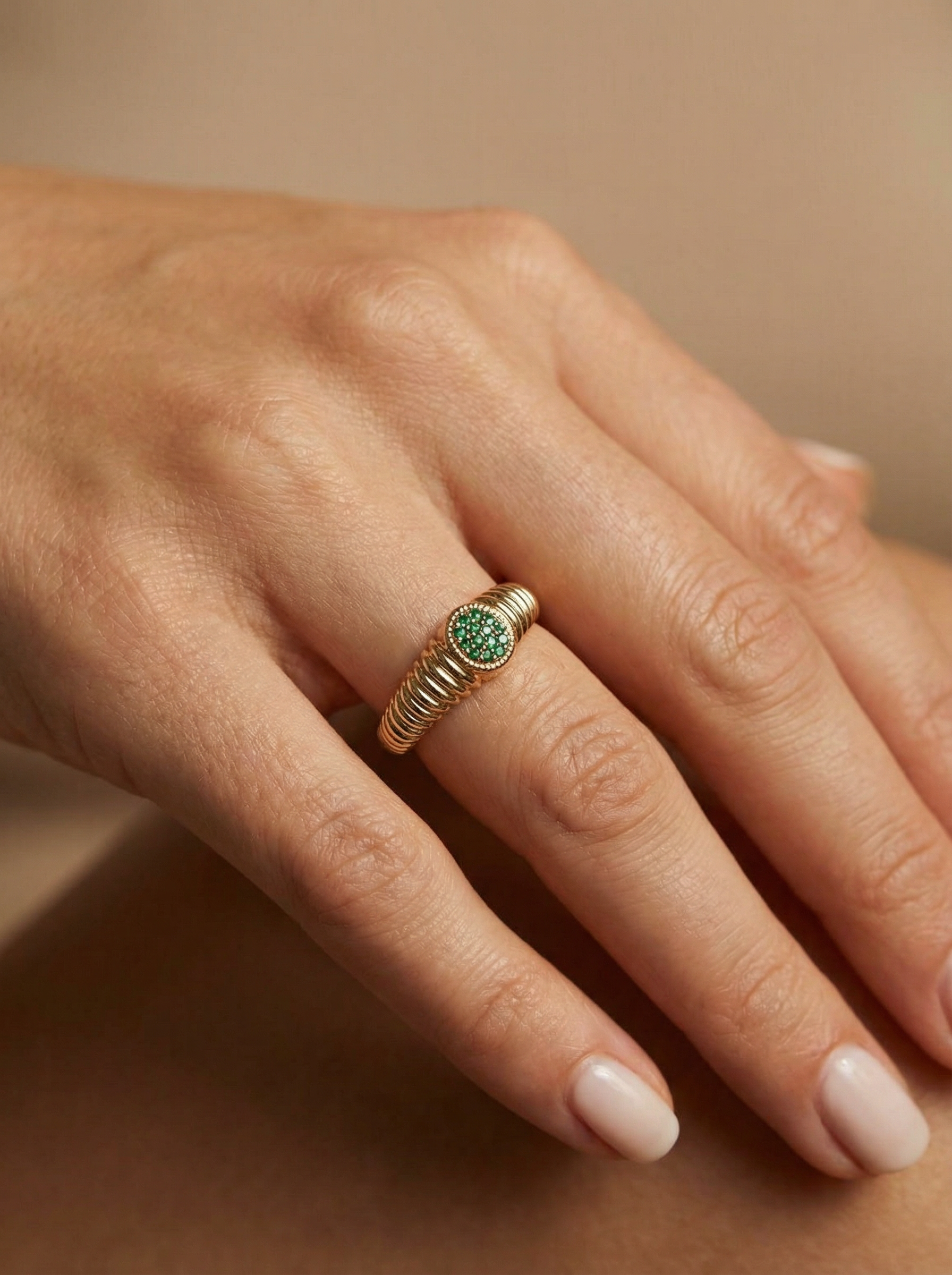 Rachel Fluted Emerald-Pinky Ring